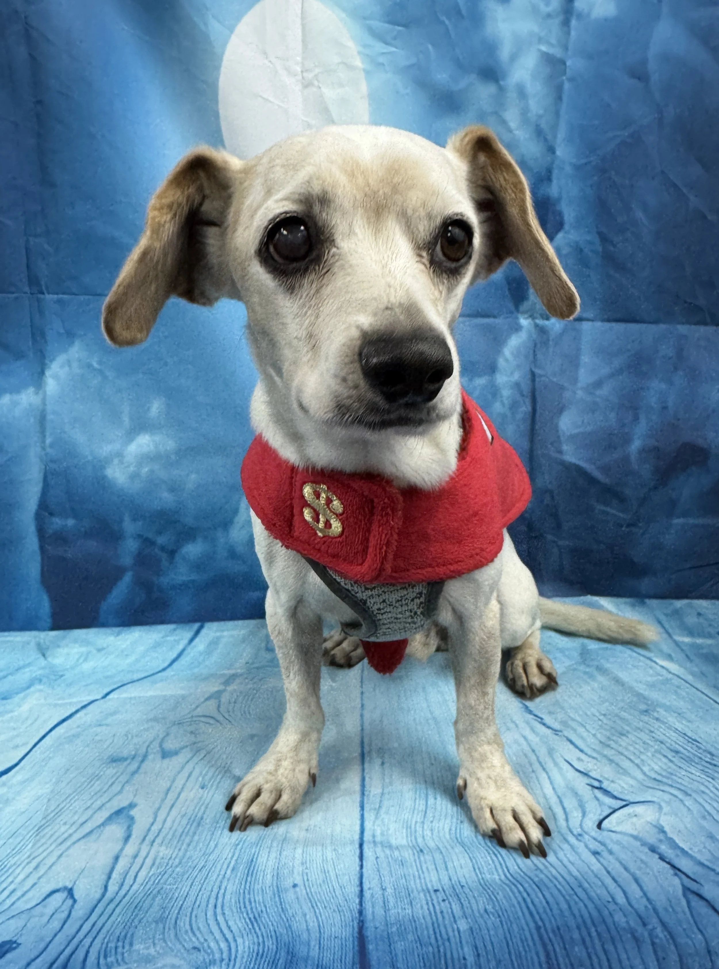 Hi there, I’m Jameson Whiskey—a sweet 8-year-young Chihuahua mix weighing in at just 12 pounds. Don’t let my age fool you, I’ve still got lots of love and happy tail wags to give! I’m a gentle little guy who can be a bit timid at first, but once I know I’m safe, I’ll happily snuggle right into your arms as I love being close to my person. I’m doing well on my leash so I can enjoy a leisurely walk every now and then. I get along nicely with other dogs too, so I’d fit right in with a furry friend or two. What I’m really hoping for is a soft place to land and a loving family to call my own. Could that be with you?