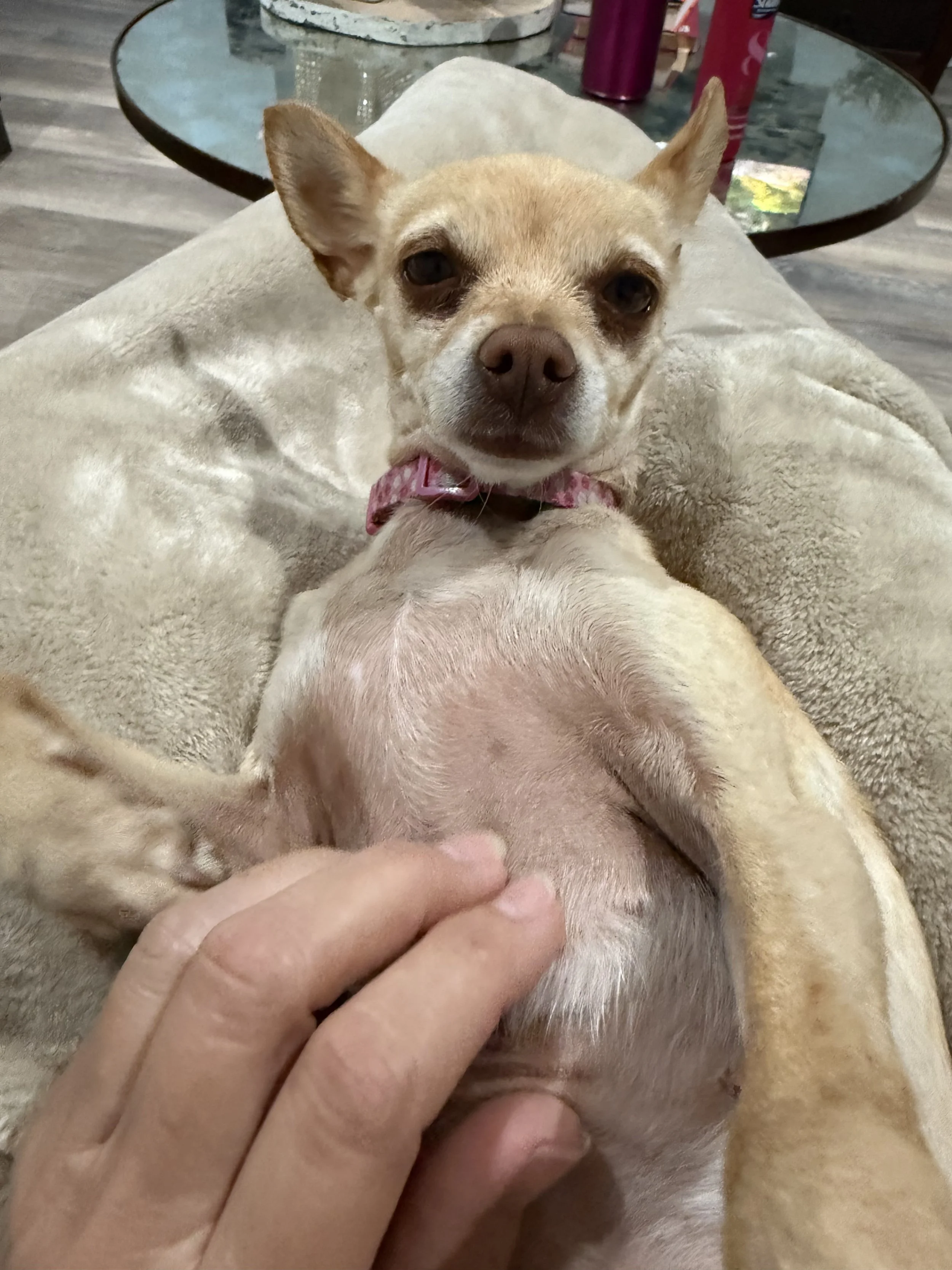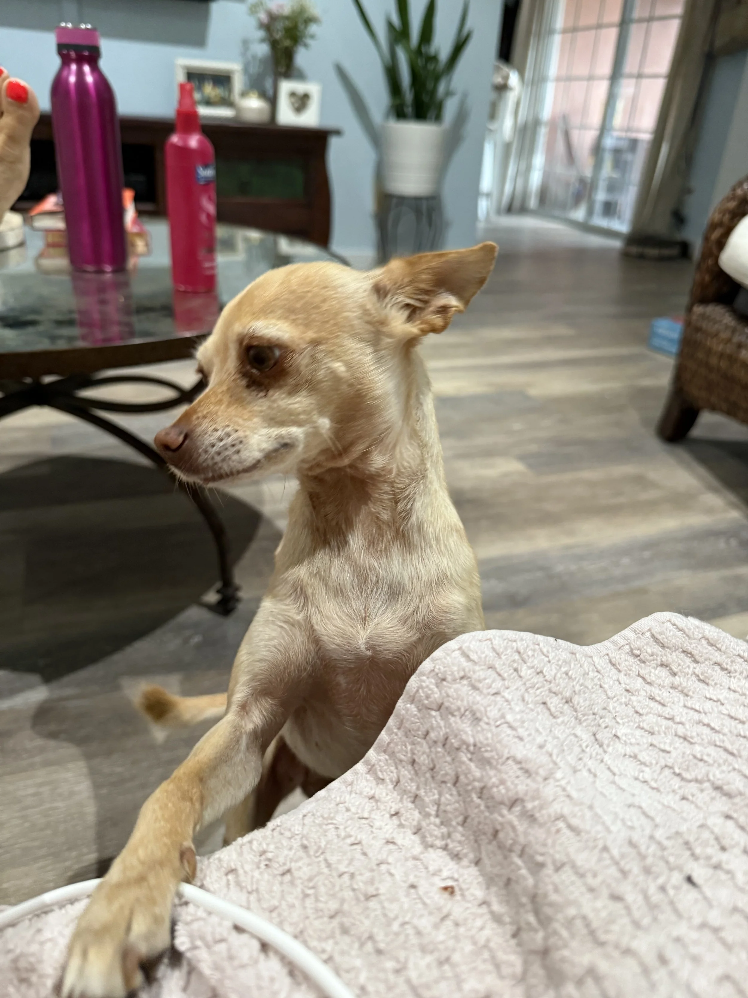 Hi, I’m Sunny! I’m a 3-year-old, 9-pound Chihuahua with a soft reddish coat and a little brown nose that everyone says is just the cutest. I’m looking for a forever home where I can feel safe, loved, and really blossom.